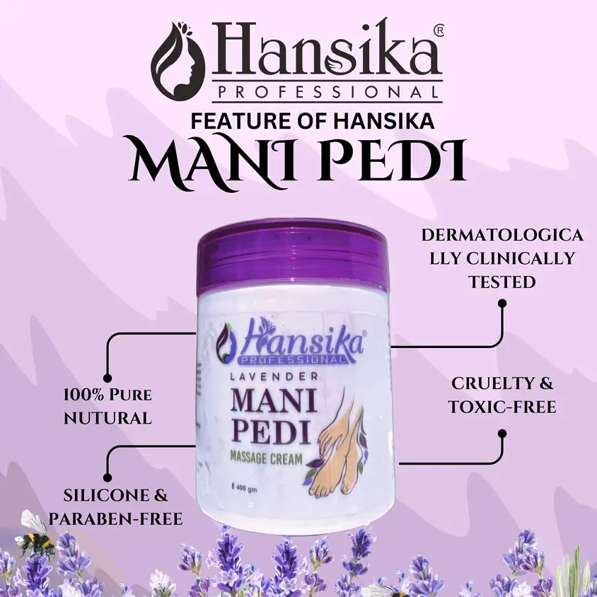 Hansika Mani Pedi Massage Cream deeply nourishes rough and tired skin, leaving hands and feet smooth and refreshed. Ideal for salon and home use.