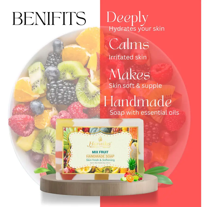 Unlock the benefits of HANSIKA MIX FRUIT SOAP 125 GMS for radiant skin and nourished hair naturally.