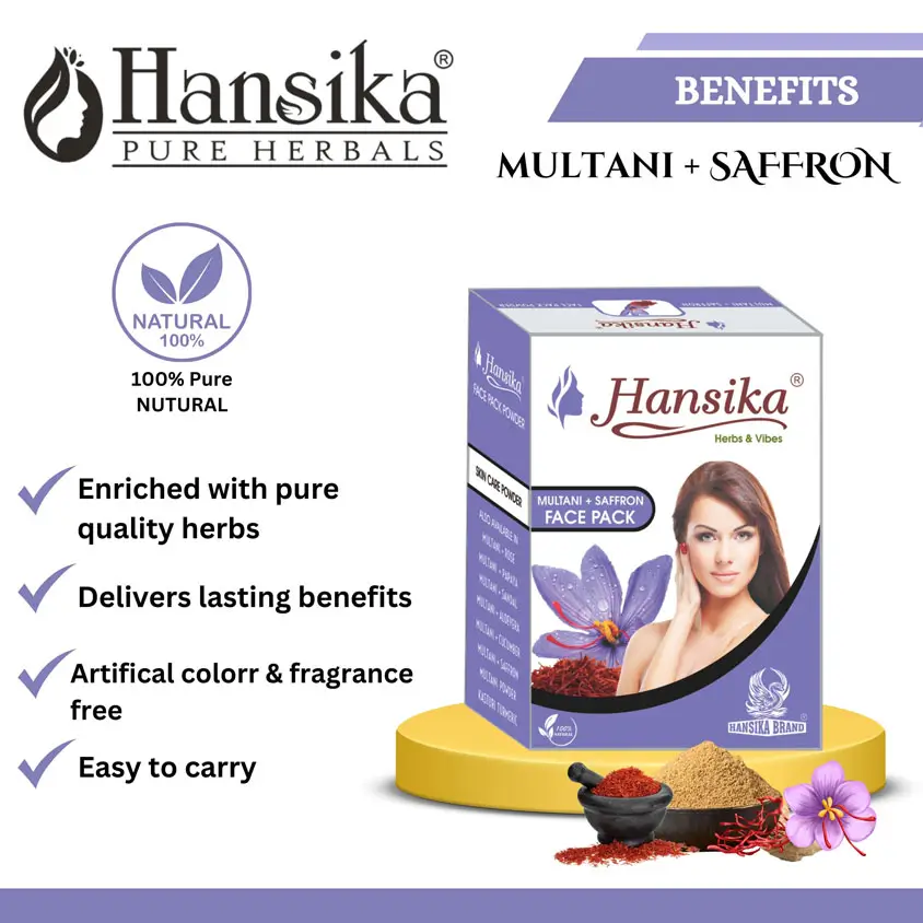 Unlock the benefits of Hansika Multani + Saffron Face Pack 100gm for radiant skin and nourished hair naturally.