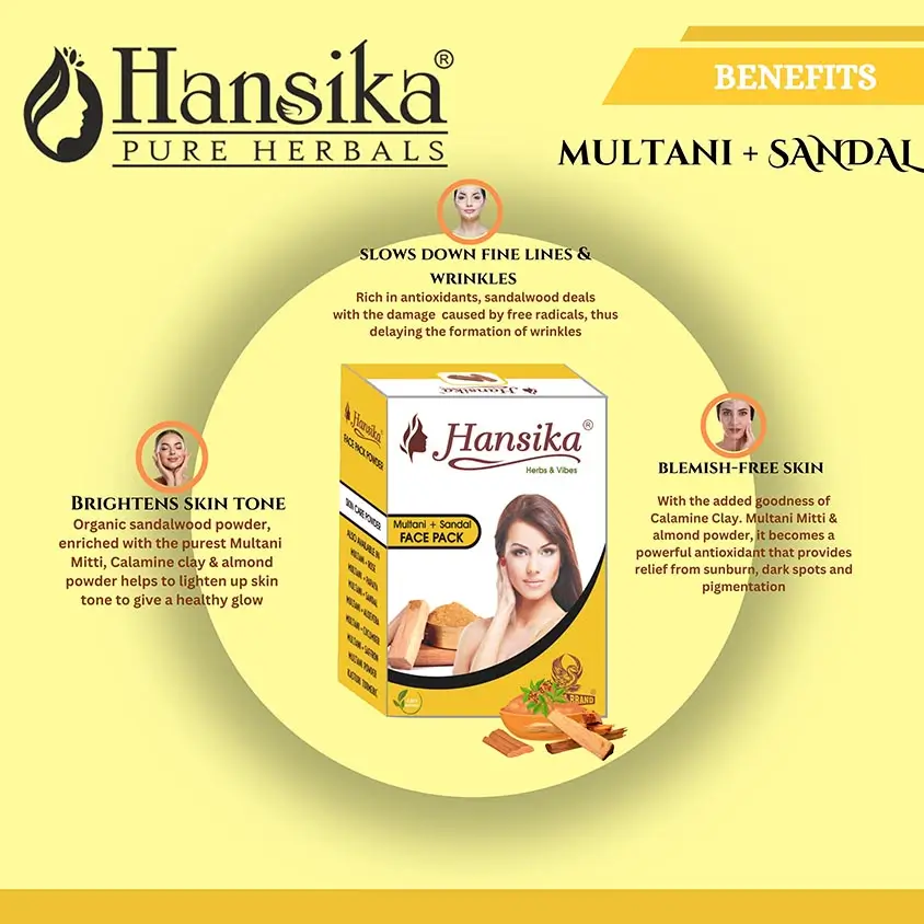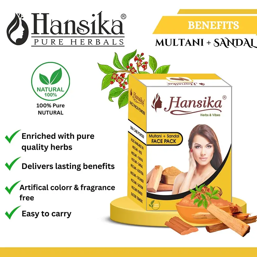 Unlock the benefits of Hansika Multani + Sandal Face Pack 100gm for radiant skin and nourished hair naturally.