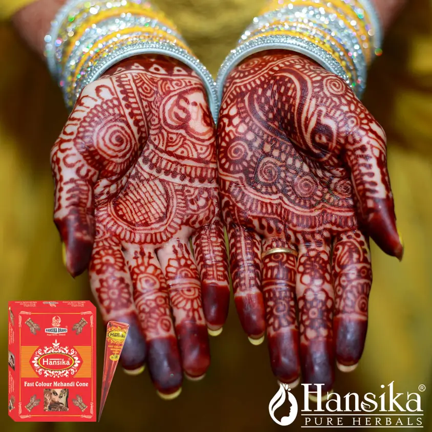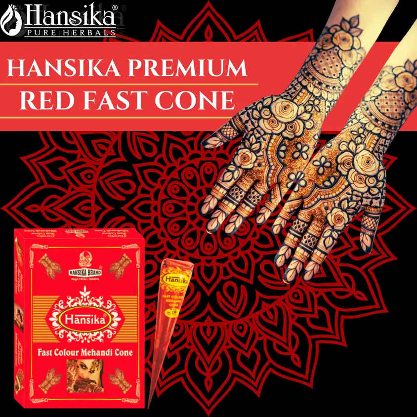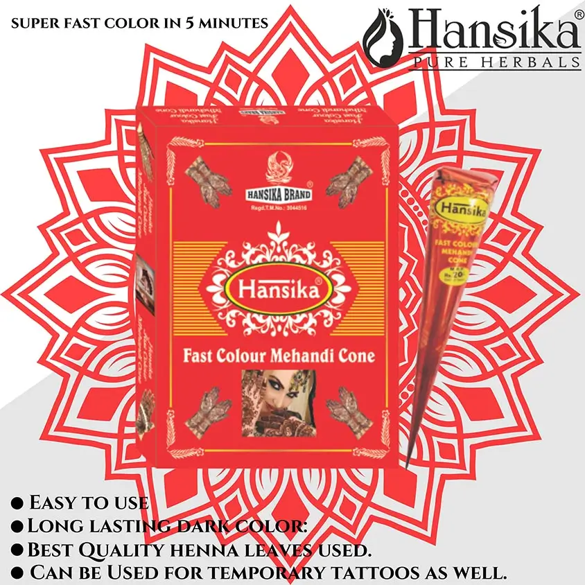 Hansika Red Fast Cone is designed for rapid and vibrant red mehandi designs. Its quick-drying formula ensures lasting color and ease of application.