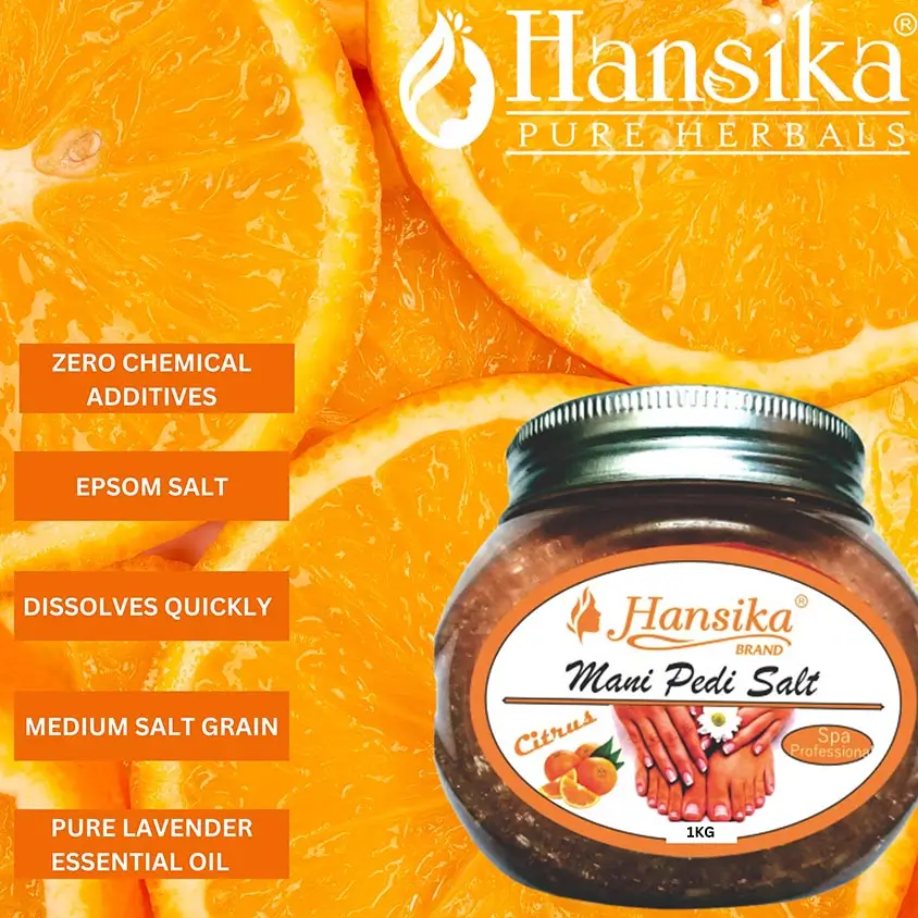 Hansika Citrus Bath Salt is enriched with vitamin C and essential minerals to brighten the skin and provide a refreshing, energizing bath experience.